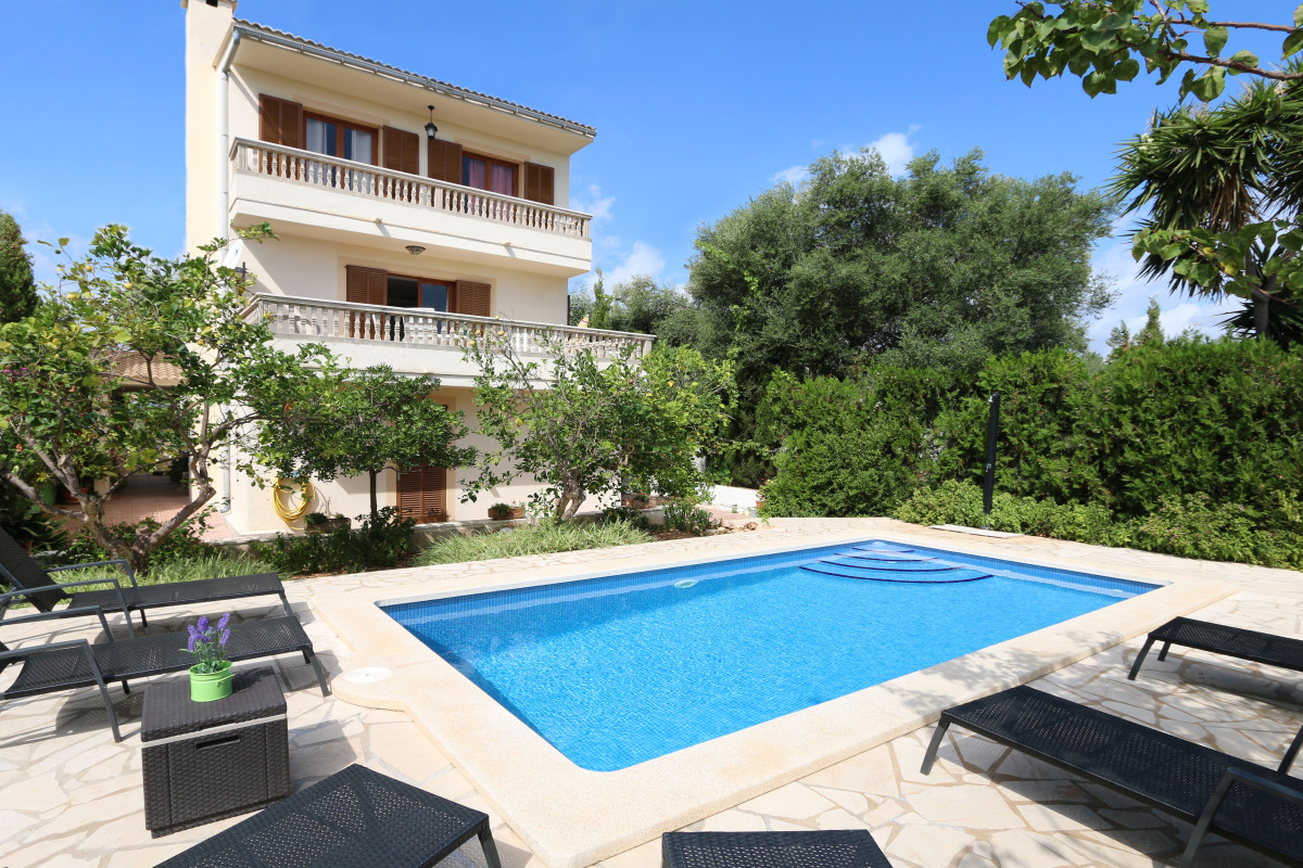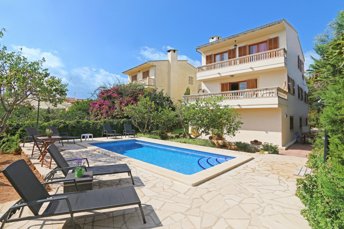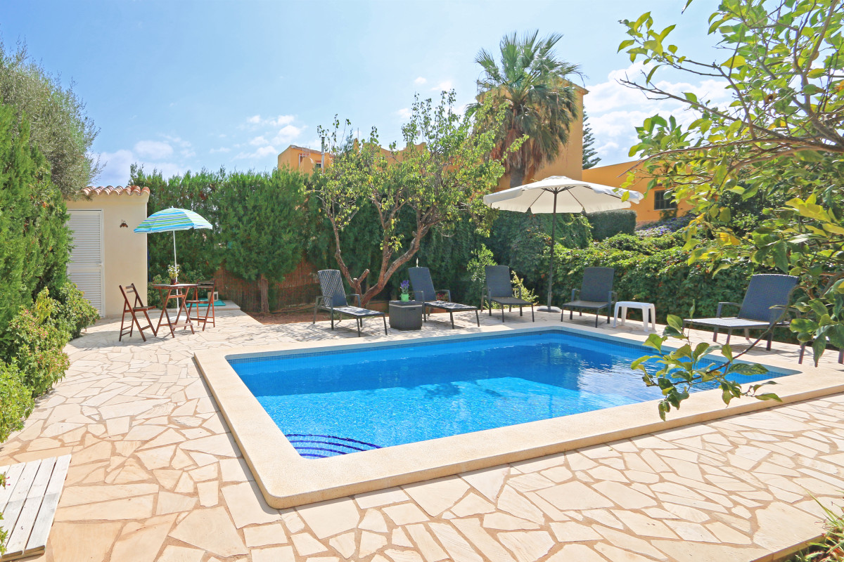 Die Casa C'an Biel liegt in einem ruhigen Wohngebiet von Sa Coma, nur 300 Meter Luftlinie vom wunderschönen Sandstrand Sa Coma Beach entfernt. Das freistehende Haus verfügt über einen großzügigen, sichtgeschützten Garten mit einem einladenden 8 x 4 Meter großen Pool, ideal für entspannte Stunden und erfrischende Momente im Wasser.
