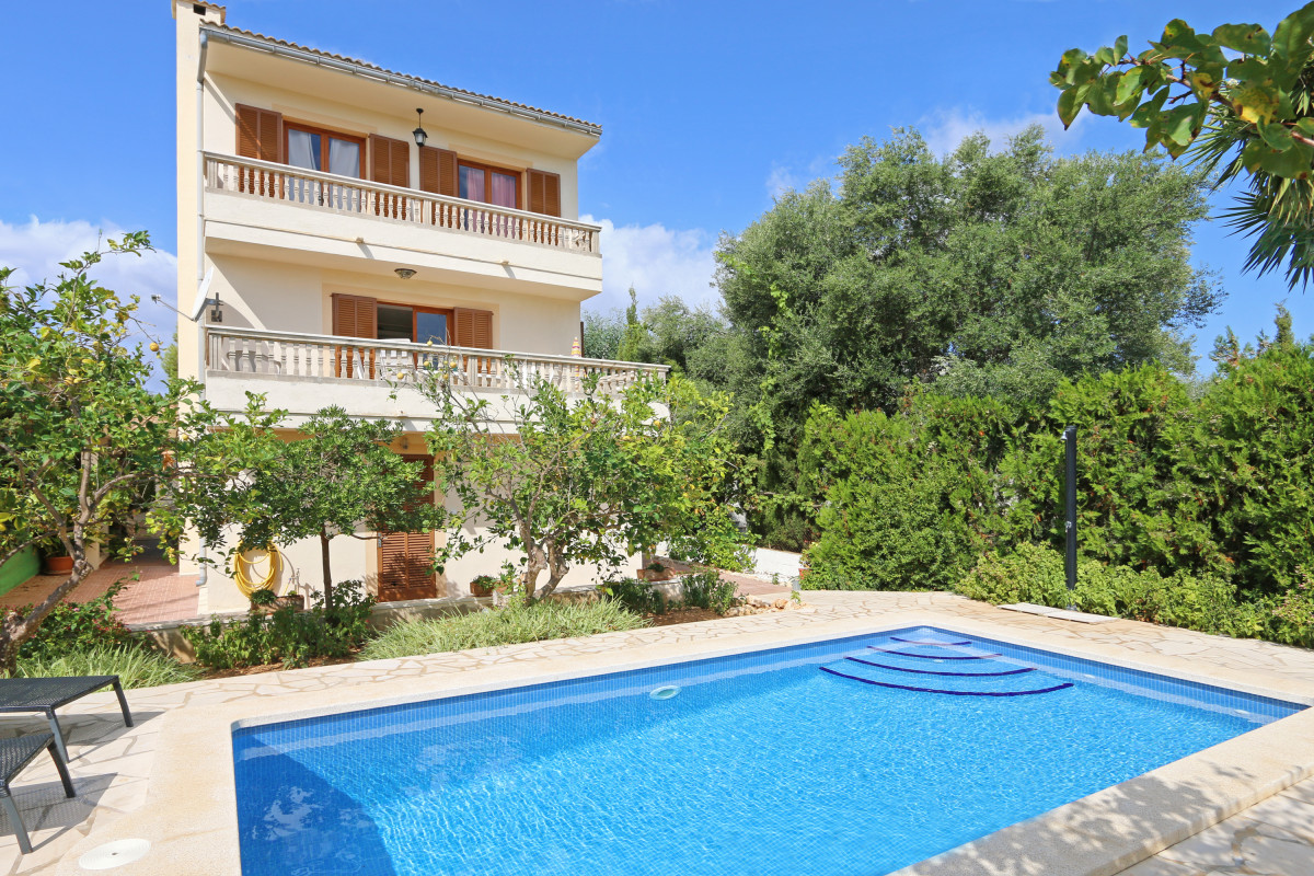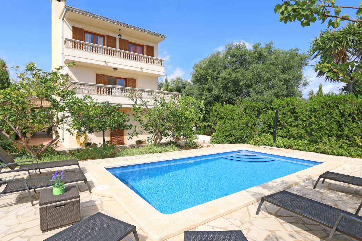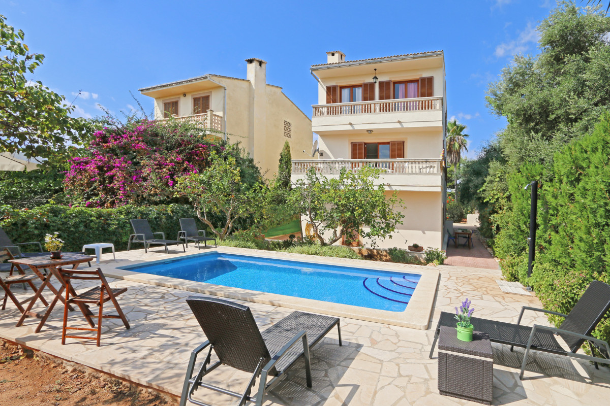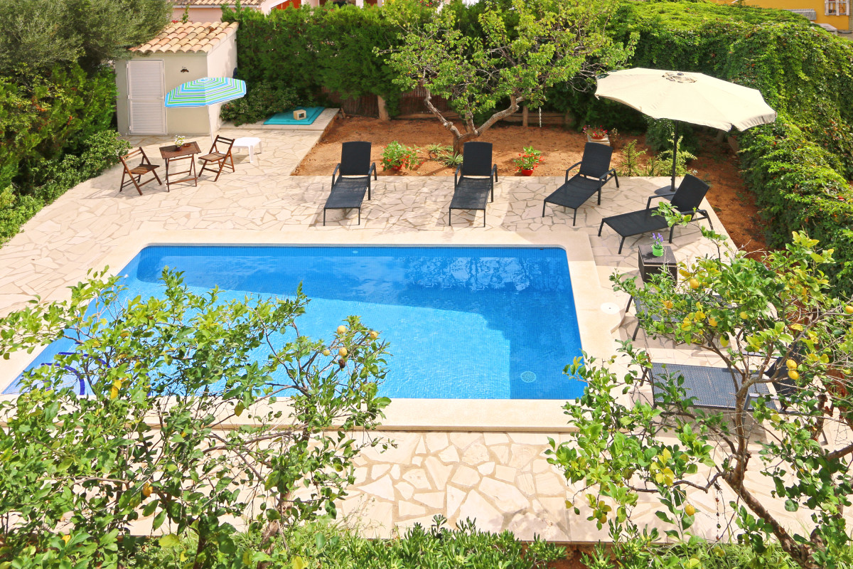 Die Casa C'an Biel liegt in einem ruhigen Wohngebiet von Sa Coma, nur 300 Meter Luftlinie vom wunderschönen Sandstrand Sa Coma Beach entfernt. Das freistehende Haus verfügt über einen großzügigen, sichtgeschützten Garten mit einem einladenden 8 x 4 Meter großen Pool, ideal für entspannte Stunden und erfrischende Momente im Wasser.