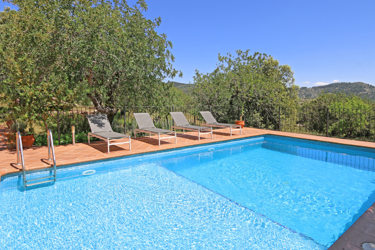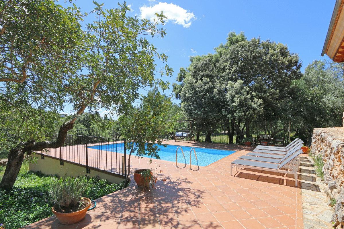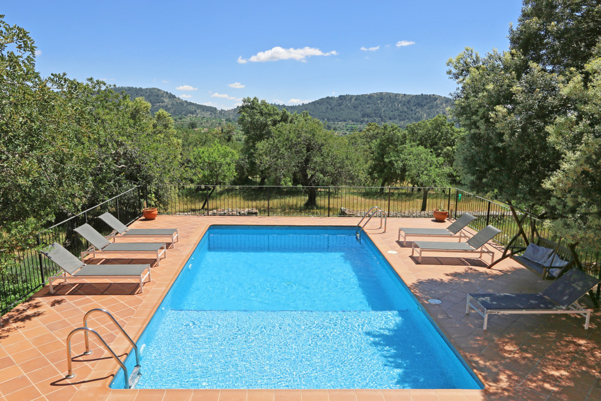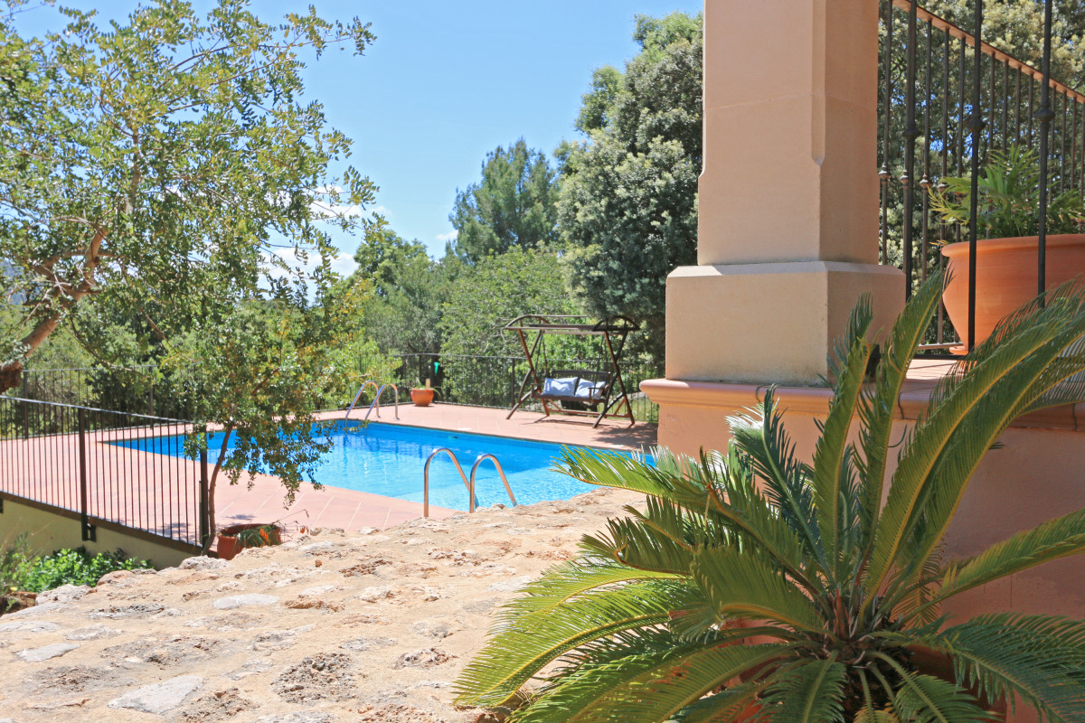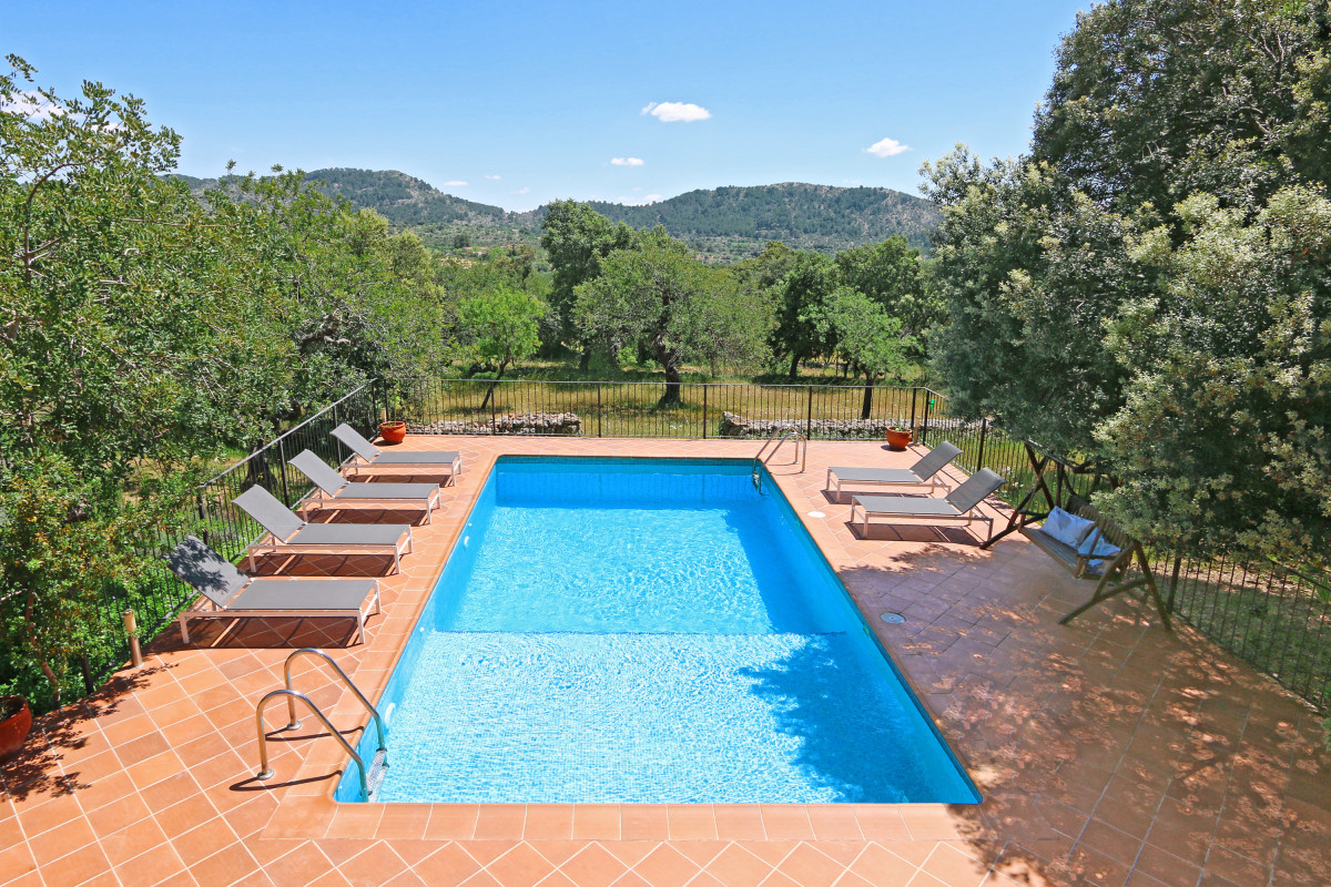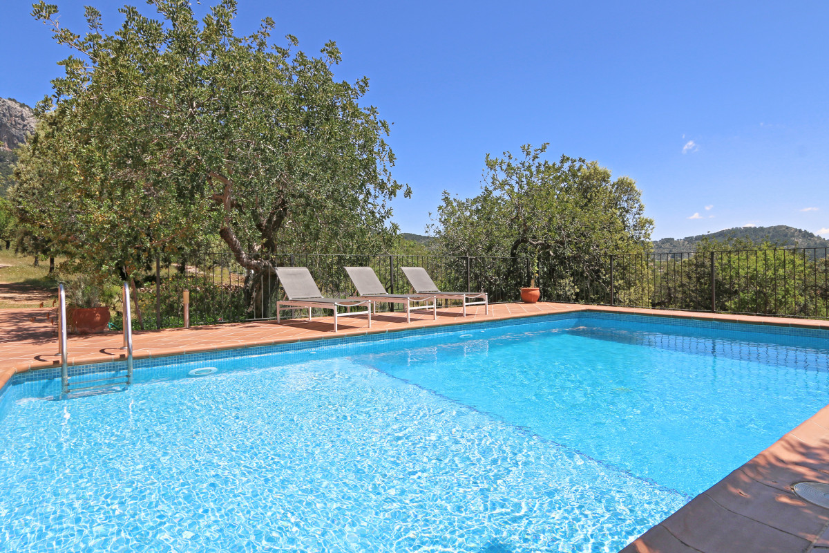 Von der überdachten Terrasse auf der Gartenseite des Hauses genießt man die Ruhe und idyllische Lage, den Blick auf den 8 x 4 Meter großen Pool und den weitgehend naturbelassenen Garten sowie einen überwältigenden Blick in das wunderschöne Tal bei Alaró. Dank idealer süd-östlicher Ausrichtung erfreut die Sonne hier von morgens bis in den späten Nachmittag. Eine gemütliche Outdoor-Sitzecke befindet sich im Schatten eines großen Baumes direkt neben dem erfrischenden Wasser des Pools. Ein idealer Ort zum Entspannen und Wohlfühlen. Alaró ist in wenigen Minuten und sogar fußläufig erreichbar, außerdem empfehlen sich Wanderungen oder Radtouren am Fuße der Tramuntana und in Richtung Orient. Der Anschluss zur Autobahn, über die man bequem Palma sowie den Rest der Insel mit ihren zahlreichen traumhaften Stränden erreicht, ist nur 7 km entfernt.