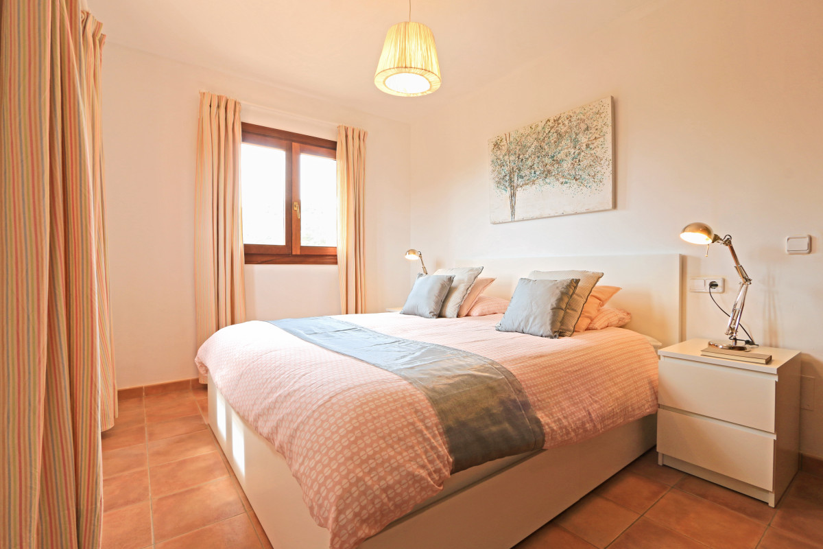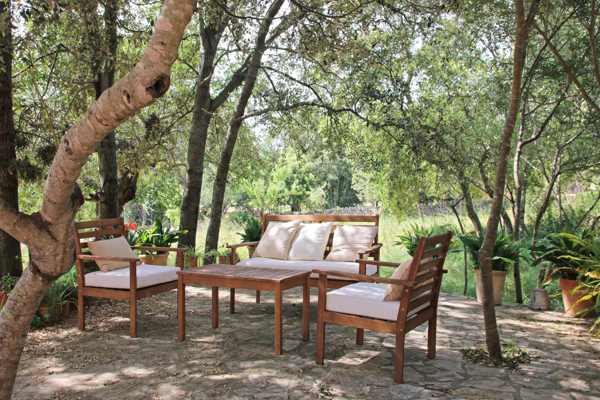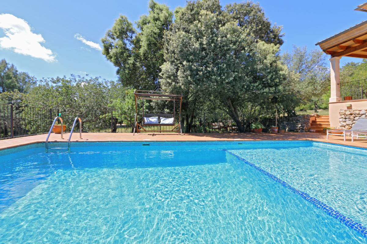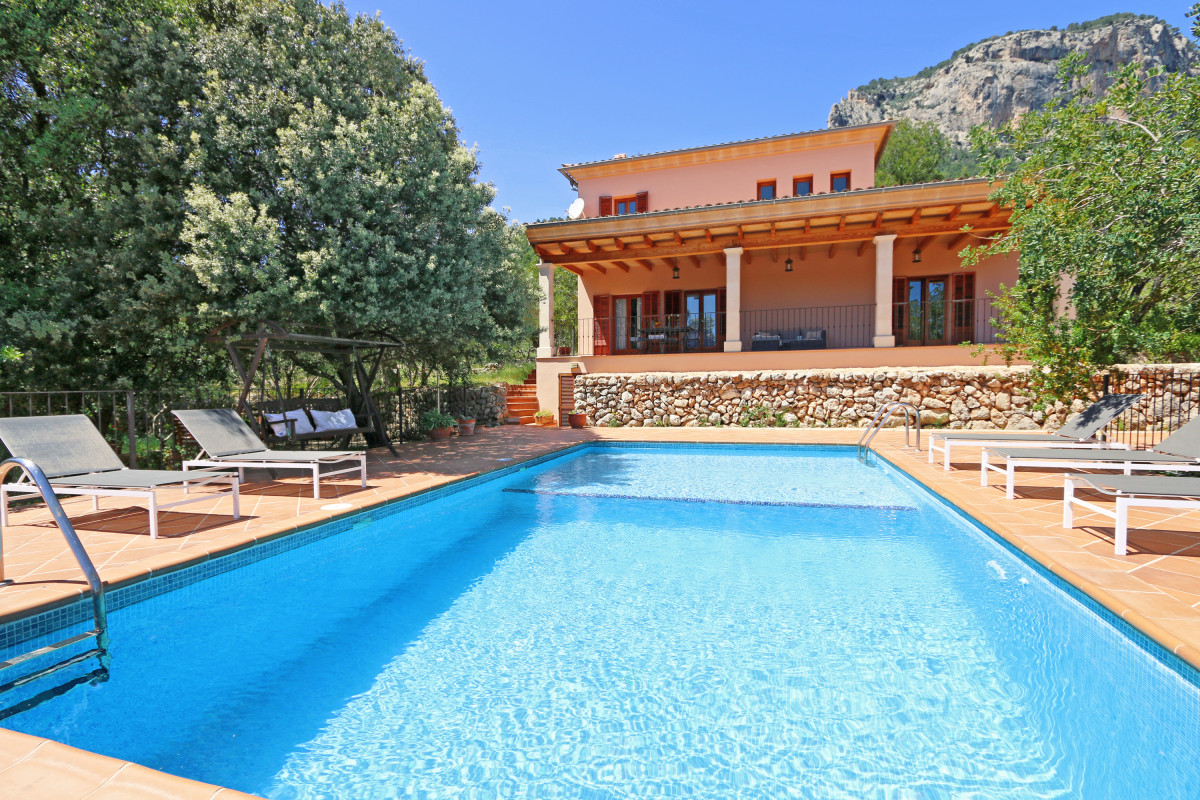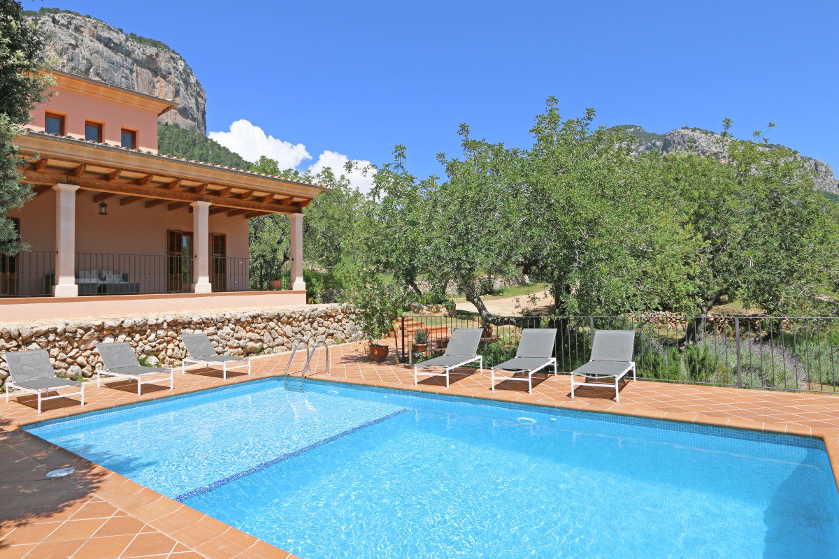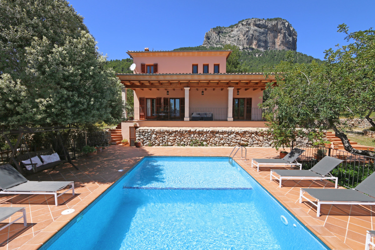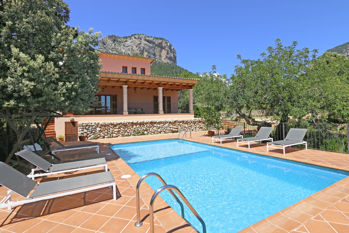 Von der überdachten Terrasse auf der Gartenseite des Hauses genießt man die Ruhe und idyllische Lage, den Blick auf den 8 x 4 Meter großen Pool und den weitgehend naturbelassenen Garten sowie einen überwältigenden Blick in das wunderschöne Tal bei Alaró. Dank idealer süd-östlicher Ausrichtung erfreut die Sonne hier von morgens bis in den späten Nachmittag. Eine gemütliche Outdoor-Sitzecke befindet sich im Schatten eines großen Baumes direkt neben dem erfrischenden Wasser des Pools. Ein idealer Ort zum Entspannen und Wohlfühlen. Alaró ist in wenigen Minuten und sogar fußläufig erreichbar, außerdem empfehlen sich Wanderungen oder Radtouren am Fuße der Tramuntana und in Richtung Orient. Der Anschluss zur Autobahn, über die man bequem Palma sowie den Rest der Insel mit ihren zahlreichen traumhaften Stränden erreicht, ist nur 7 km entfernt.