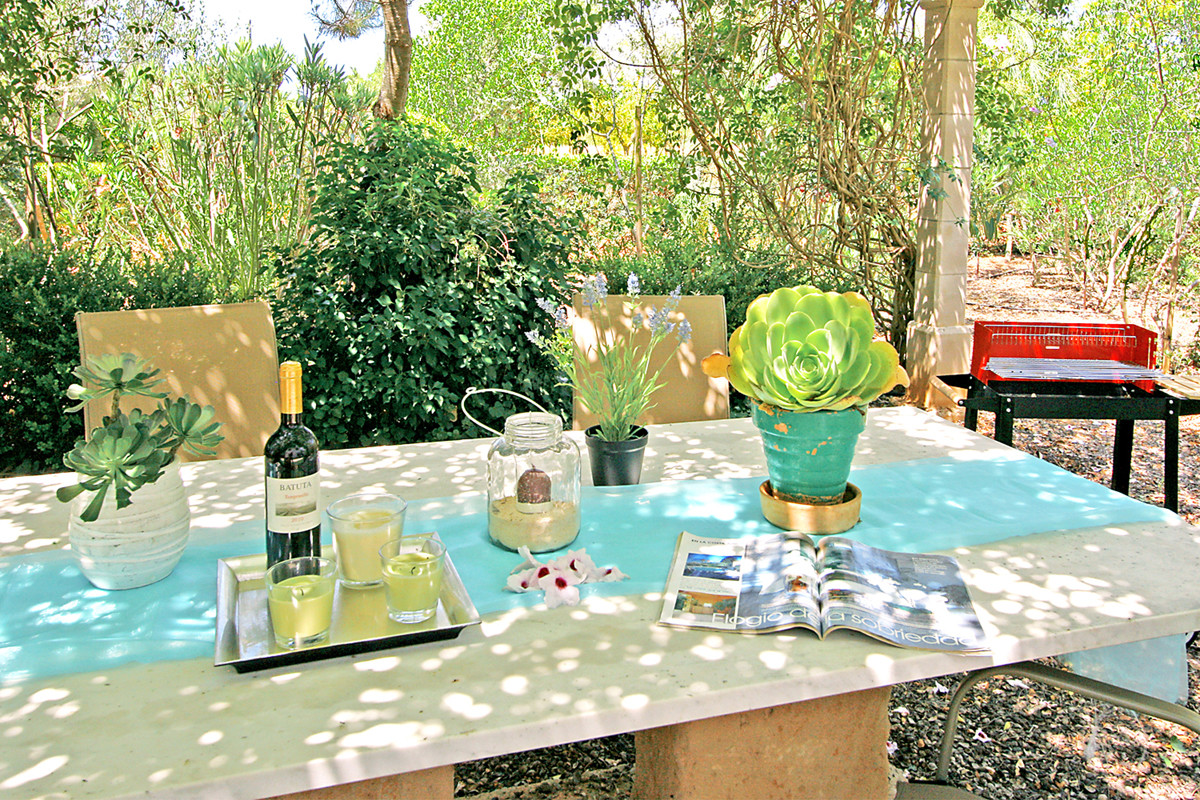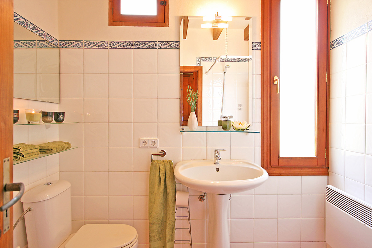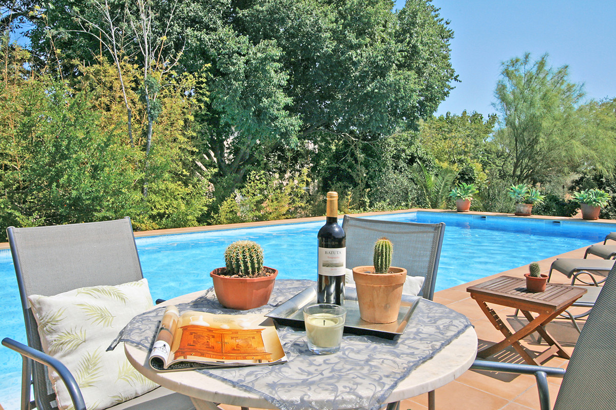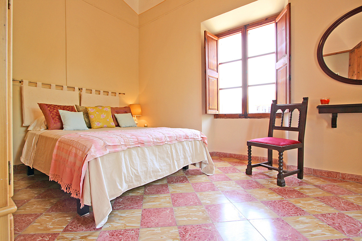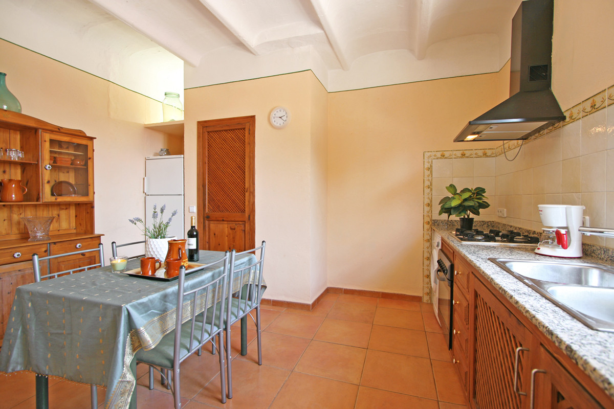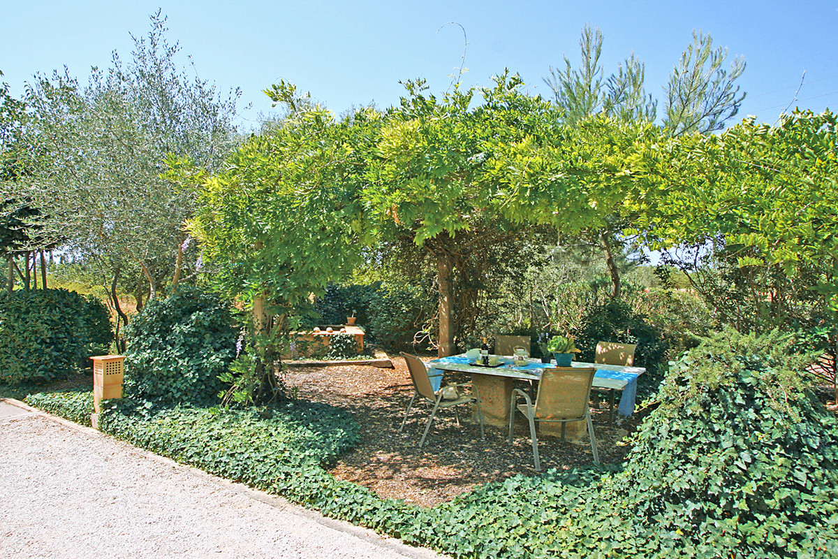 Inmitten eines großen Landgutes bei Santa Maria mit einem herrlichen Fernblick auf das Tramuntanagebirge und umgeben von Mandel- und Orangenbäumen liegt das ehemalige Herrenhaus mit diversen Gebäudeteilen in einem großen und liebevoll angelegten Garten. In dem herrschaftlichen Haupthaus wird die obere Etage zur touristischen Vermietung ausgebaut, die über eine Außentreppe und natürlich einen eigenen separaten Eingang zugänglich ist. Hier finden sich vier der insgesamt 8 Schlafplätze mit zwei separaten Schlafzimmern, eine komplette Küche, ein großer Wohnbereich und ein Bad. Der Wohnraum ist mit deutschem Sat-Tv ausgestattet und ist offen zu einem geräumigen Essbereich, der mit typischen Landhausdetails dekoriert ist. Die weiteren vier Schlafplätze finden sich in zwei separaten Anbauten, die getrennt vom Haupthaus liegen. In beiden Bereichen, welche offen gehalten sind, stehen jeweils zwei Schlafplätze, ein Bad, Wohnbereich mit eigenem Sat-Tv und Esstisch sowie eine Küchenzeile zur Verfügung. Alle drei Bereiche - Haupthaus und die beiden Anbauten - verfügen über Klimageräte. Die verschiedenen Bereiche werden nur an eine Gästegruppe vermietet, nicht separat. Basispreis für 4 Personen - dann steht nur der große Bereich im Haupthaus zur Verfügung, beide Appartements werden geschlossen. Bei 5- 6 Gästen steht ein weiteres Appartement und bei 7-8 Gästen stehen beide Anbauten zur Verfügung. Alle Bereiche verfügen zudem über eigene Terrassenbereiche. In dieser idyllischen Kulisse befindet sich auch der mobile Außengrill. Internet per W-Lan ist kostenlos in allen Bereichen und sogar am Pool vorhanden.